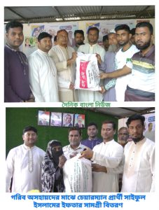 পবিত্র রমজান মাসকে সামনে রেখে -এ অসহায় ও নিম্নআয়ের পরিবারের মাঝে ইফতার সামগ্রী বিতরণ করেছেন ইউনিয়ন চেয়ারম্যান পদপ্রার্থী ।