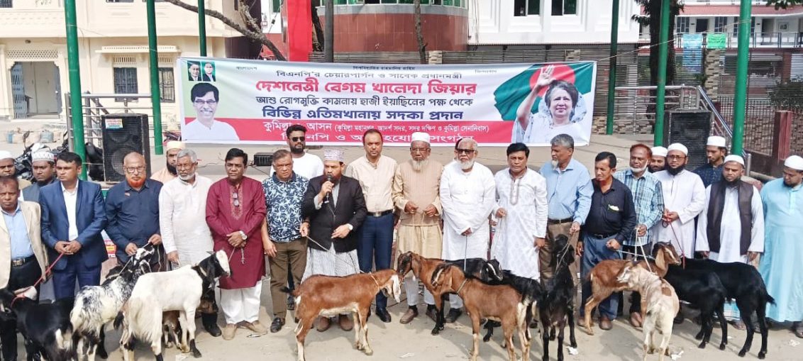 ছবিঃ কুমিল্লা টাউন হল মাঠে বেগম খালেদা জিয়ার দ্রুত সুস্থতা ও রোগমুক্তি কামনায় বিভিন্ন এতিমখানায় পশু সদকা প্রদান করা হয়।