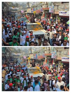 পরে লাকসাম বাজারে ডোল ও বাঁশির তালে তালে উৎসবমুখর পরিবেশে নেতাকর্মীদের সঙ্গে নিয়ে গণসংযোগে অংশ নেন তিনি। বাজারের বিভিন্ন স্থানে সাধারণ ভোটারদের সঙ্গে কথা বলেন এবং ধানের শীর্ষ প্রতীকে ভোট প্রার্থনা করেন। এরপর উত্তরদা ইউনিয়নের বিভিন্ন এলাকায়ও নির্বাচনী প্রচারণা চালান।